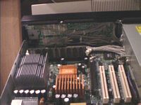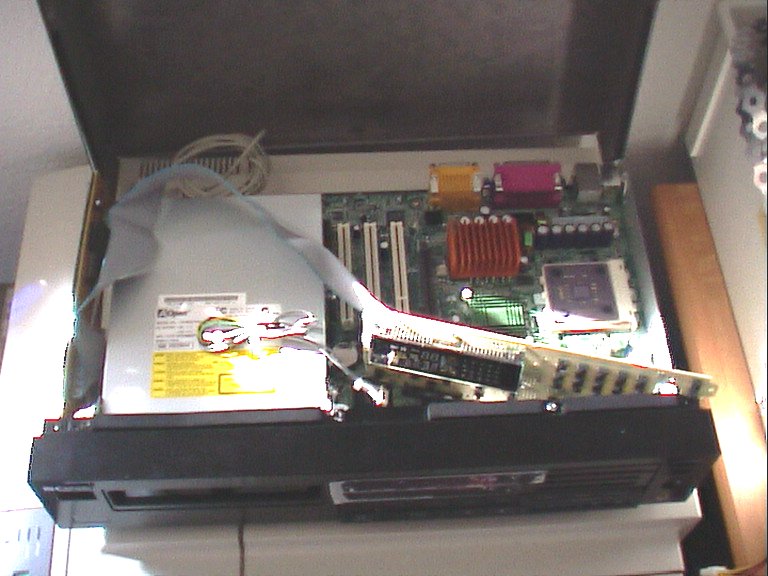 ![]() | Videocard in place, and no space left. If the videocard had been a few millimeter taller, I would have had to use an flexible AGP riser instead. |