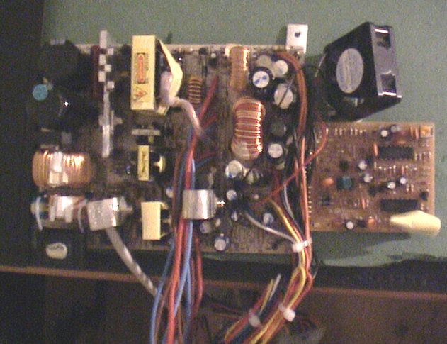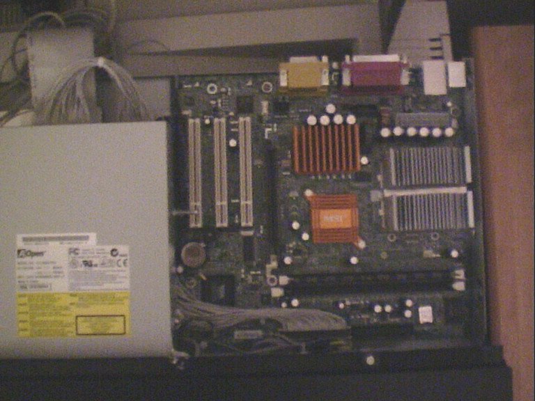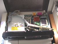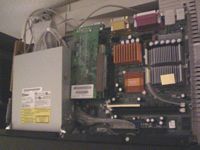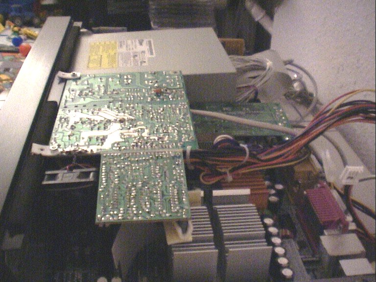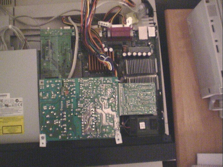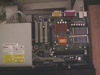 ![]() | The PSU installed in the case. I had to put it upside down, and again there is no space left. One of the trafo's rest on the AGP risercard. |
