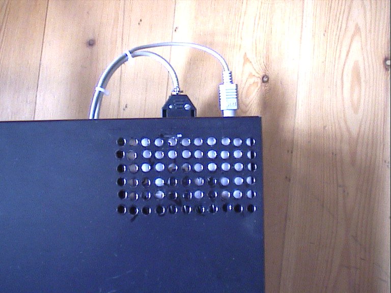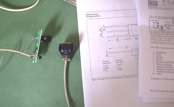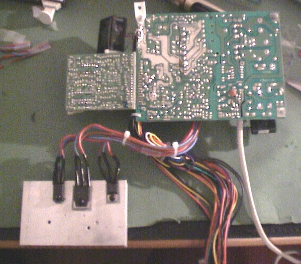 ![]() | This DivX player is gonna be remote controled, so I found a scematics for an IR reciever for the serial port, and soldered it on the frontpanel where the old IR reciever was located. |