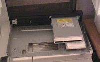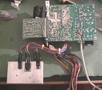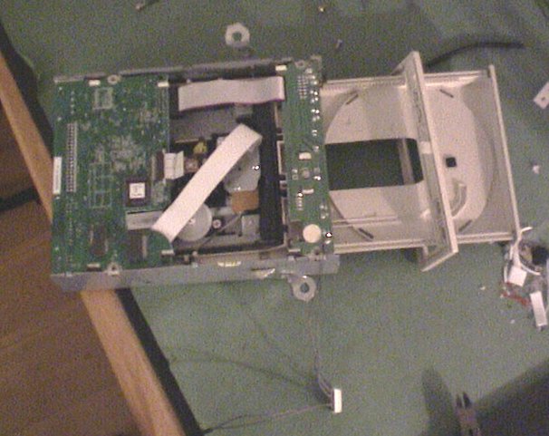 ![]() | Im gonna use the original open/close button on the frontpanel to control the CDROM, so I opened up the CDROM and soldered some wires to the printboard. |