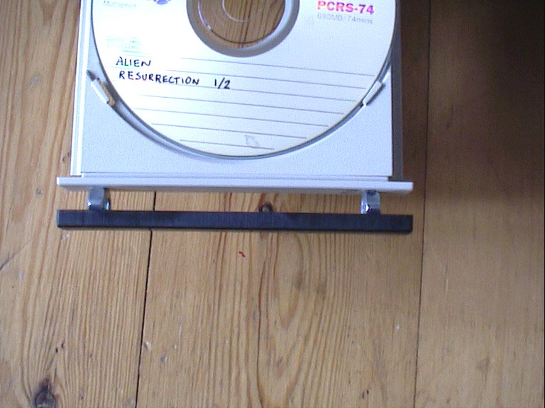 ![]() | I took the old Sony CD front and glued it on the CDROM drive. I used two nuts as spacers. |