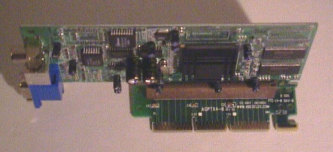 ![]() | This is my videocard with tv-out and an AGP risercard. I had to angle the card because even though it's lowprifile, it was much too tall to stand upright. |