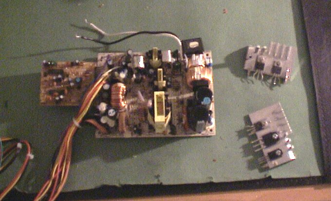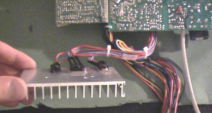![]() | I had to split up the IDE cable to make them bend better, and thereby make enough room for the heatplates on the PSU. |