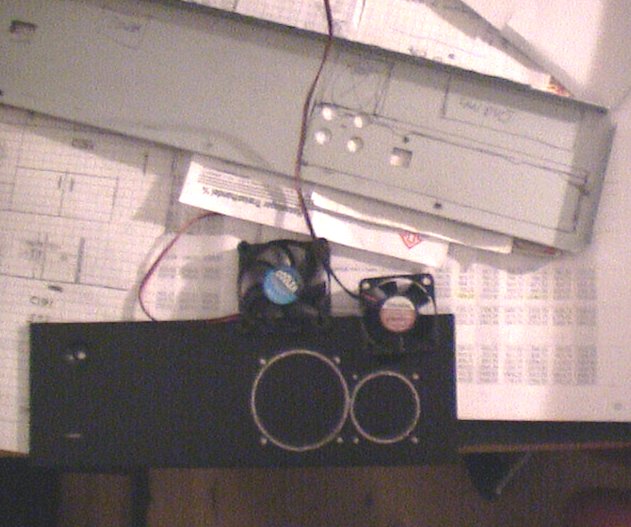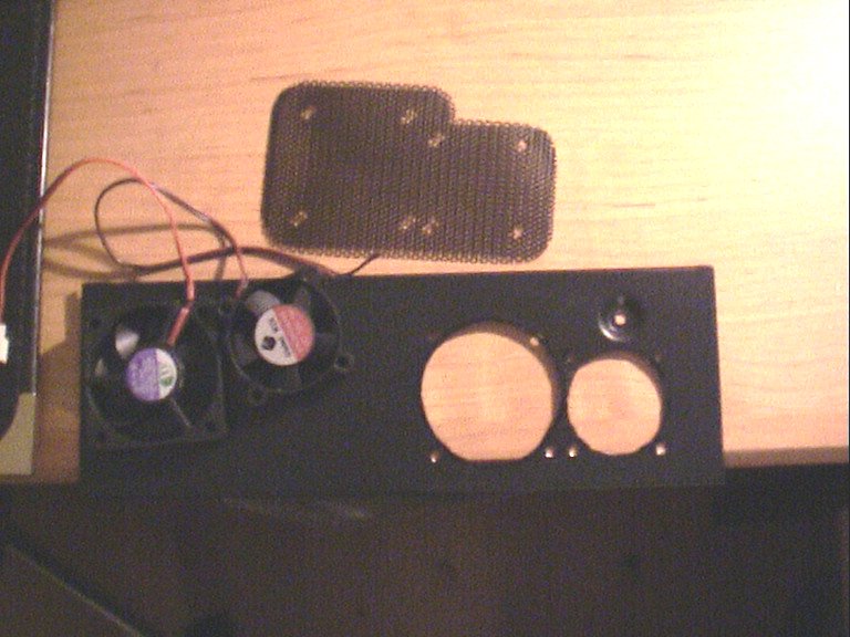 ![]() | I took a cover from a carspeaker, cut it up, and put in front of the fans, to make it look better. Later I removed it again to improve the airflow... |